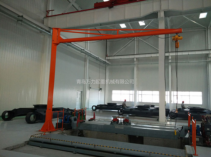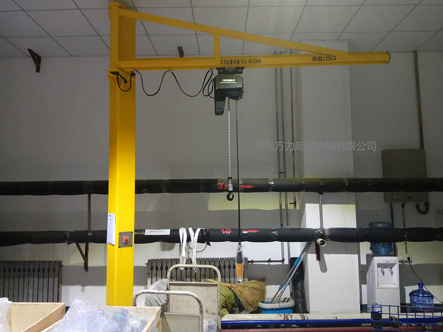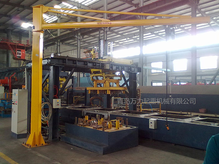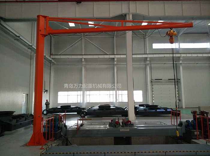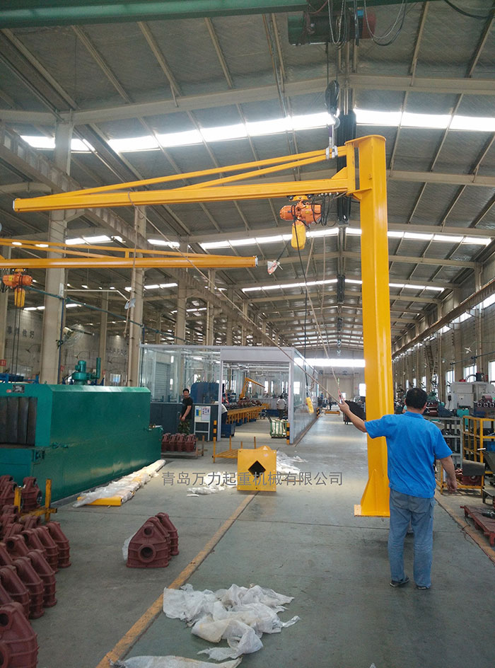 要設計方案的專用型起重機械。具備構造新奇、有效、簡易、實際操作方便使用、旋轉靈便、安全作業室內空間大等優勢,是環保節能高效率的原材料吊裝武器裝備。可普遍運用于廠礦、生產車間的生產流水線、裝配流水線和數控車床的上下左右鋼件及庫房、港口等場所的吊物吊裝。本機由立桿、旋轉懸臂及環鏈電動葫蘆等構成。立桿下方固定不動于混凝土基本上,懸臂旋轉,可依據客戶要求開展旋轉。